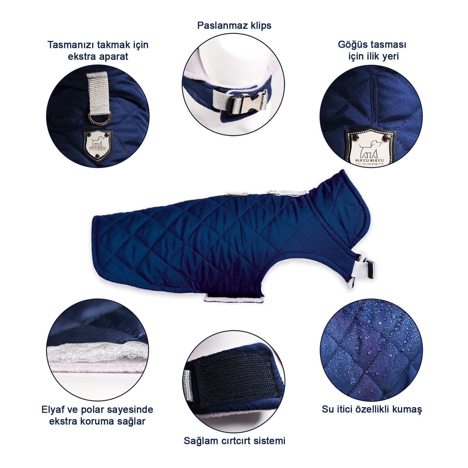 Kuccu Kuccu Gesteppte Hundejacke – Dunkelblau | Wasserabweisend & Winddicht | Größen S–XXL