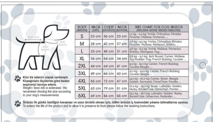 Größen: S, M, L, XL, XXL